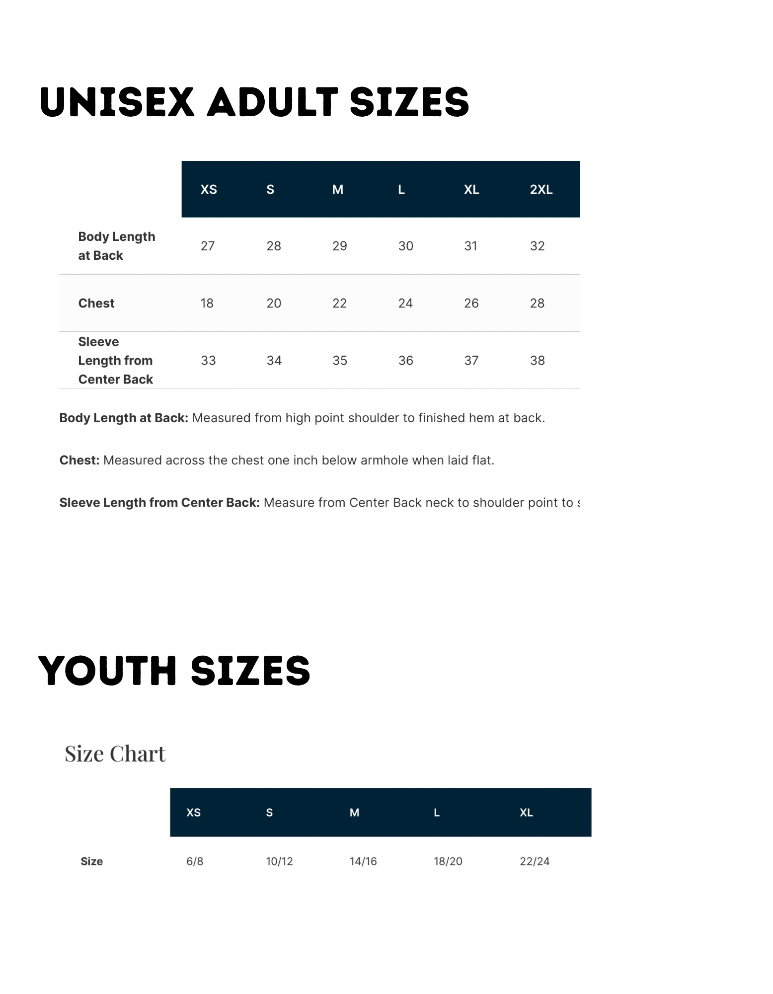 S, M, L, XL, 2XL, YS, YM, YL, YXL |