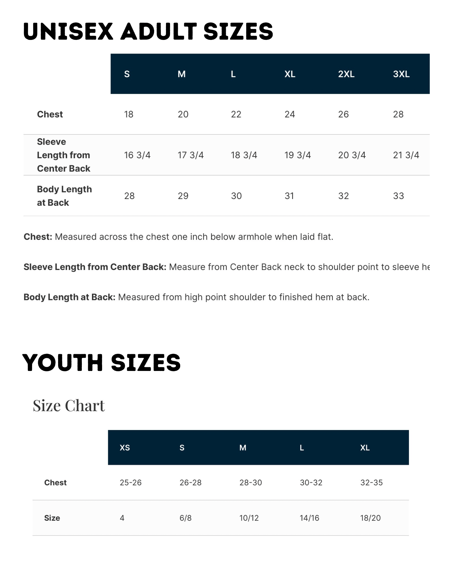 S, M, L, XL, 2XL, YS, YM, YL, YXL |